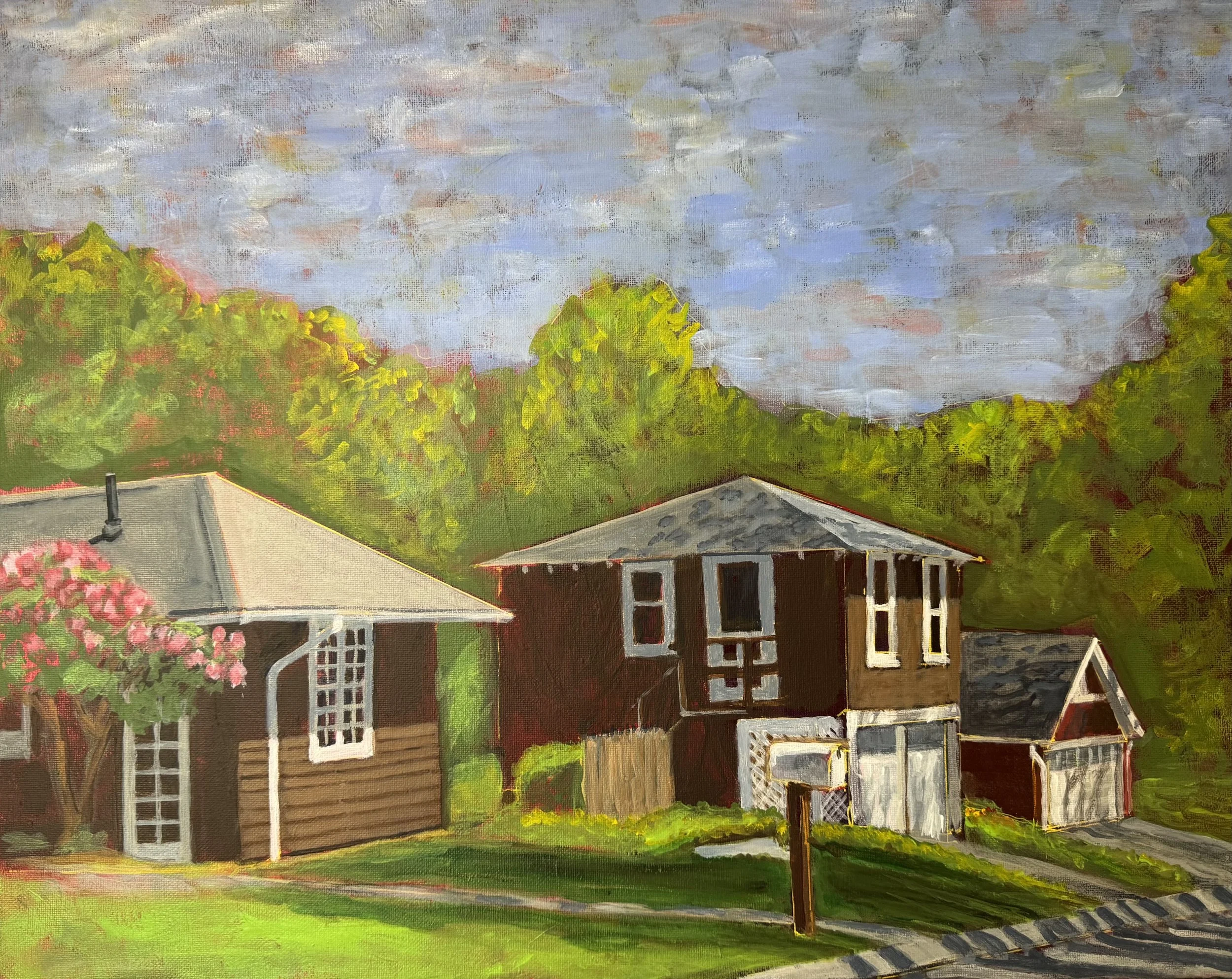 Acrylic on stretched canvas with floating pine frame